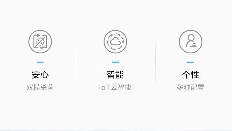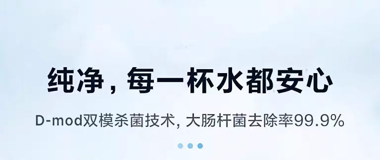 双模杀菌:净水箱360°全方位UVC-LED杀菌,实用新型专利,提高杀菌效果;温水、冷水出水再经全物理UV杀菌,出水水质更安心;