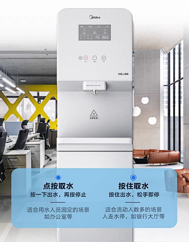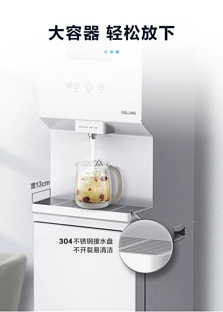 舒心升级:热水、温水二种水温,独特贴心;全触摸按键,“一键控制”实现“长按”“短按”取水方式的切换,不同场景使用更贴心、更舒心;接水盒容量达1.6L,宽度13cm,水杯、水壶 轻松放;采用废水直排,方便快捷;漏水保护装置,呵护环境安全;