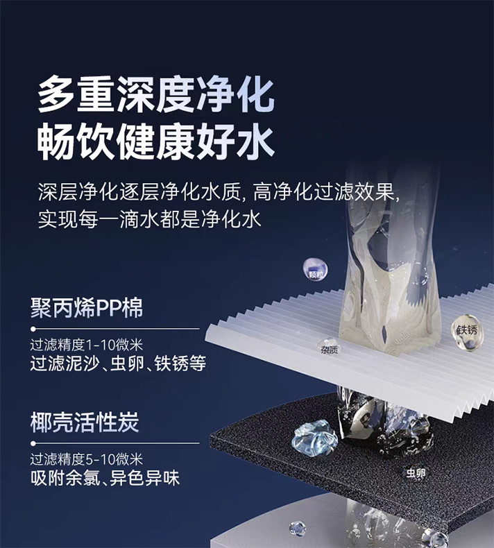 多重深度净化,反渗透高净化过滤效果,过滤多种有害物质