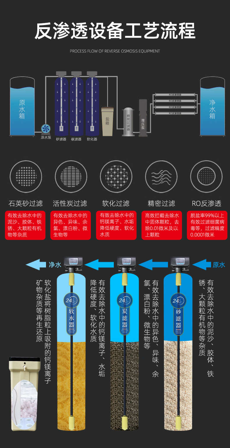 ① 大型反渗透纯水设备的选型、水处理方案的制定;