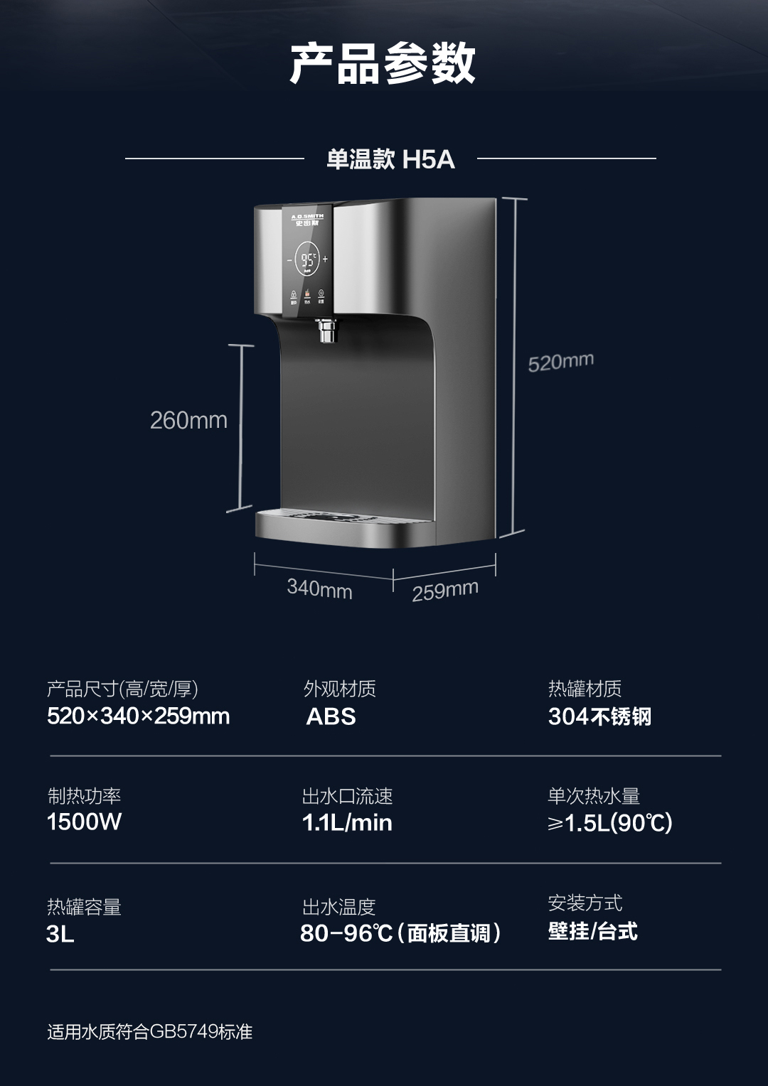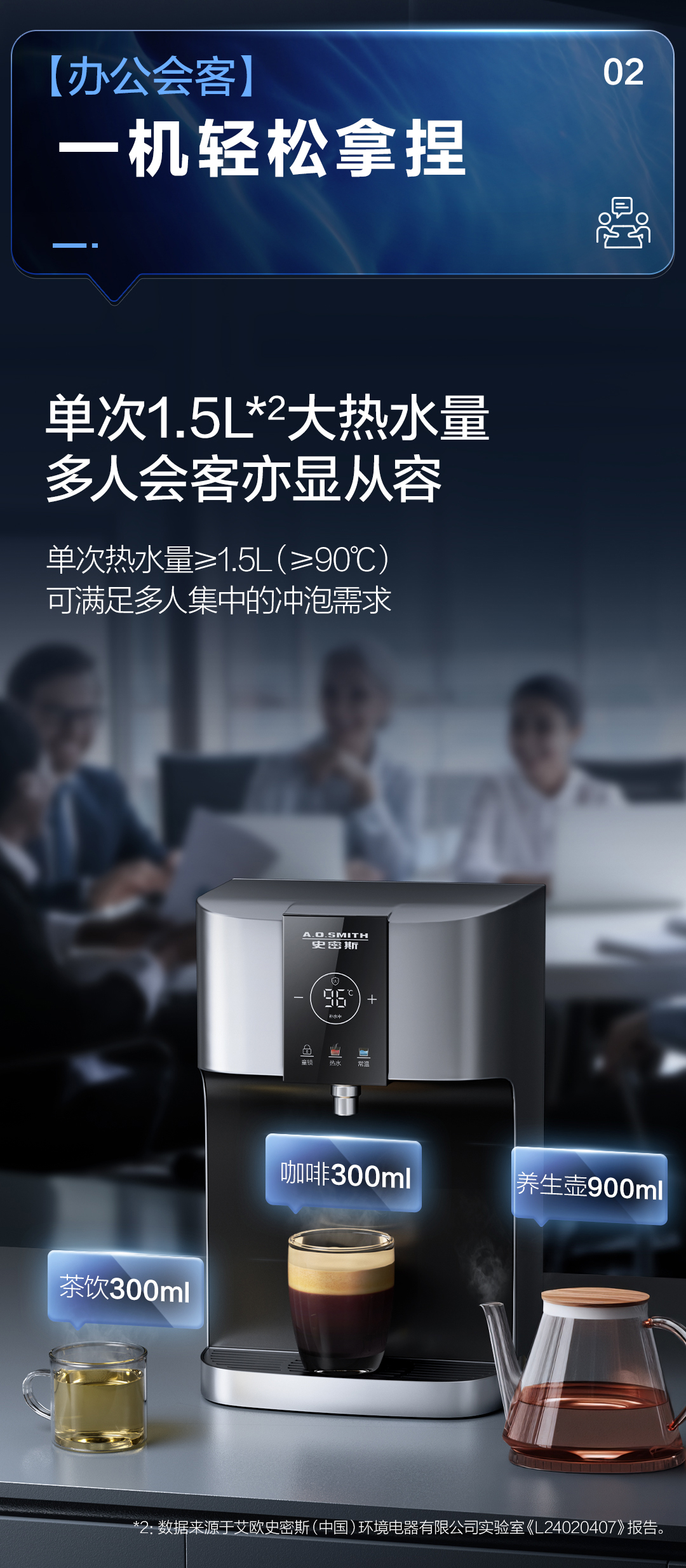大热水量:热罐提升至3L,单次热水≥1.5L(≥90℃);加热功率提升至1500W,制热能力15L/h;